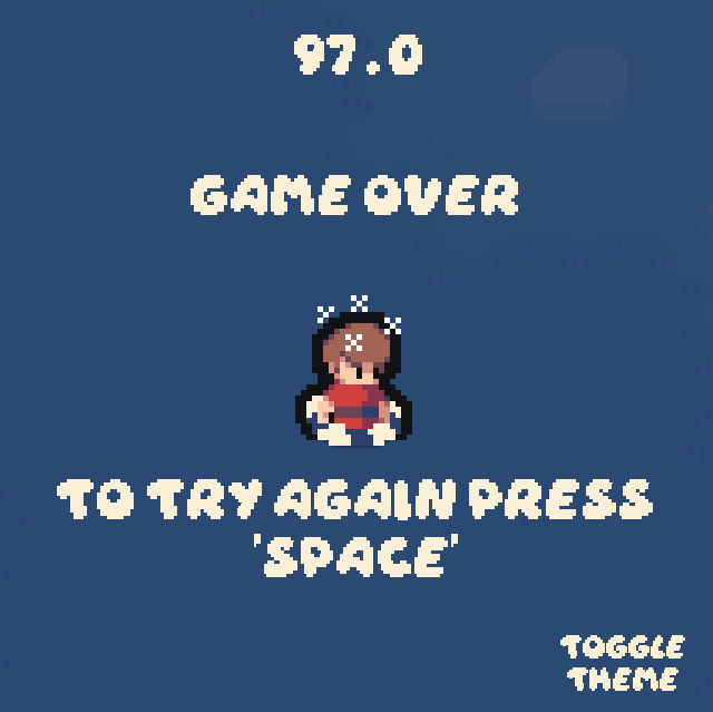 A short simple arcade like game, made primarily to focus on visuals. You can toggle the 'Toggle Theme' button to swap between themes!